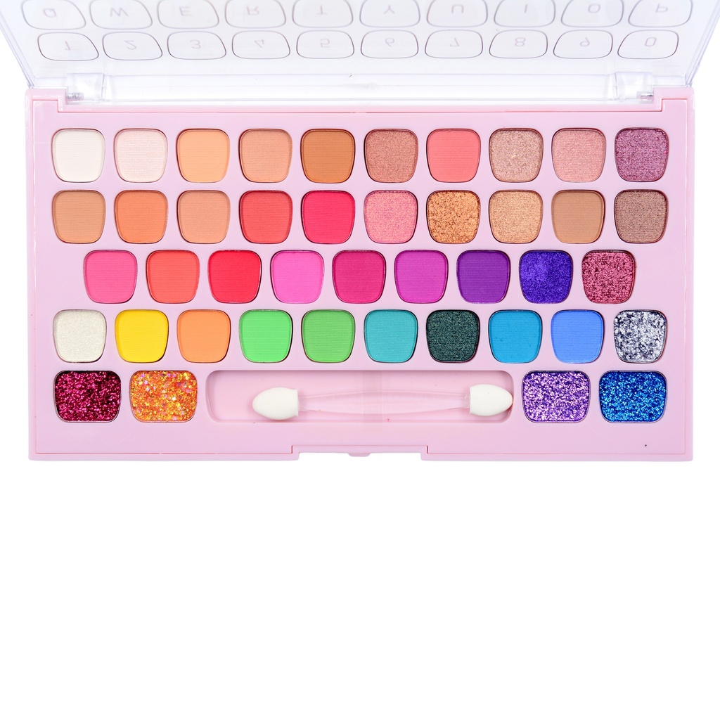 43 رنگ سایه دارای یک عدد براش پيگمنت بالا ماندگاري بالا طرح فانتزی کیبورد داری رنگ های مات و شاین رنگ های جذاب بسته بندی زیبا